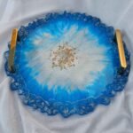 12″ AGATE SLICE RESIN TRAY – BLUISH